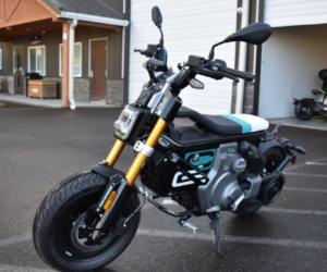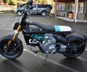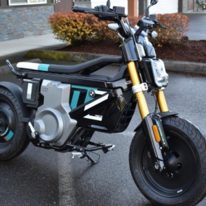 2024 BMW CE 02. This is BMW’s latest “eParkourer,” perfect for urban commuting and city zipping. It has only 144 original miles and has been garage-kept and meticulously cared for. It’s essentially a new bike without the dealership fees.